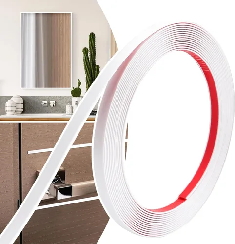 【Moldura flexible para despegar y pegar】20 pies (6.1m) de largo × 0.39 pulgadas (10mm) de ancho × 0.04 pulgadas (1mm) de grosor. Nota: este borde delgado tiene aproximadamente el diámetro de una batería AAA, por lo que es perfecto para líneas decorativas sutiles y bordes decorativos en espejos, muebles, paredes o azulejos. 【Moldura Autoadhesiva Premium】Cuenta con respaldo de pegamento acrílico duradero con fuerte adherencia y resistencia al agua. Nota: En temperaturas frías, caliente brevemente el adhesivo con un secador de pelo para restaurar la máxima adherencia antes de la aplicación. 【Cinta adhesiva versátil para pegar y desprender en paredes】Se adhiere prácticamente a cualquier superficie lisa, incluyendo plástico, azulejos, mármol, vidrio, metal y madera. Perfecto para baño, dormitorio, sala de estar, cocina, paredes de TV, techos, zócalos, esquinas, bordes de azulejos y suelos. Consejos de instalación profesionales: para obtener los mejores resultados: (1) Retira la película protectora transparente después de la instalación, (2) Desenrolla la moldura flexible en la dirección opuesta para eliminar cualquier flexión natural del embalaje. 【Moldura de pared y moldura multiusos】Esta moldura de pared flexible sirve tanto como acento decorativo como solución de borde protector para todas tus necesidades de mejoras en el hogar, desde salpicaderos hasta aplicaciones de molduras de corona.