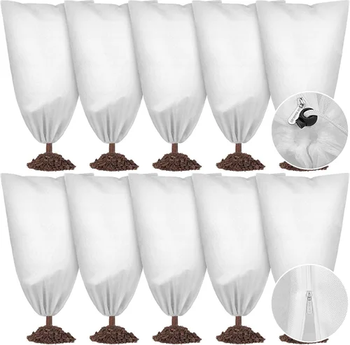 10 cubiertas para plantas, protección contra congelación, cubierta de invierno para plantas con cordón y cremallera, bolsa protectora grande