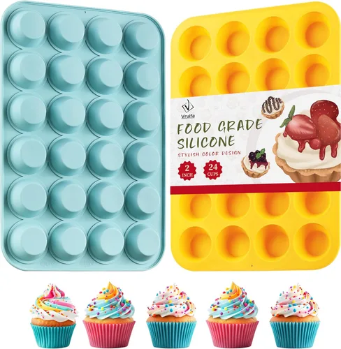 VRUIFA 2 piezas de molde para magdalenas mini de silicona, molde antiadherente para mini magdalenas de 24 tazas para hornear, libre de BPA y apto
