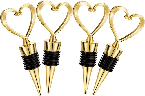 Pregunta sugerida sobre 4 tapones para botellas de vino con diseño de amor de acero inoxidable dorado, con forma de corazón, tapones para botellas de vino y bebidas ¿Qué incluye exactamente este set?