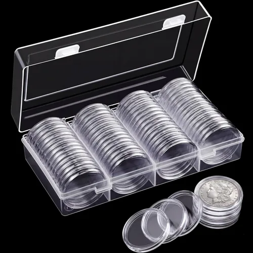 60 piezas de plata para coleccionistas de 1.598 in de plástico redondo plata monedas cápsulas cubiertas caja de almacenamiento para suministros de