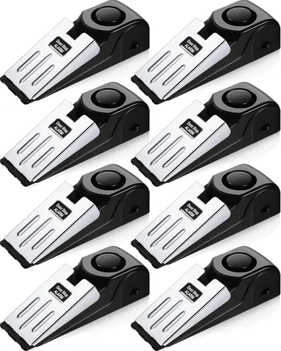 El paquete incluye: recibirás 8 piezas de alarma de tope de puerta, cada tope de puerta tiene una batería de 9 V (no incluida); cantidad suficiente puede satisfacer tus diversas demandas, forma portátil y simple de hacerte sentir más seguro cuando viajas o trabajas solo Doble función: esta cuña de alarma de tope de puerta tiene dos interruptores, encendido y apagado; cuando el interruptor de encendido está encendido, el tope de puerta se puede aplicar como una alarma de tope de puerta, y cuando se activa, mantendrá al intruso fuera; apaga el interruptor, se puede aplicar como un tope de puerta normal 3 niveles de sensibilidad: esta alarma de tope de puerta tiene un interruptor de sensibilidad ajustable en el lateral; hay 3 niveles de sensibilidad, bajo, medio y alto, que se pueden ajustar de acuerdo a tus necesidades convenientemente Fácil de instalar: no se requiere cableado, simplemente coloca la batería de 9 V en el tapón de seguridad de la puerta y cambia el botón a "ON" para funcionar; la parte inferior está hecha de goma flexible y de calidad para evitar que la alarma se deslice Alarma fuerte: 120dB fuerte se clasifica como 'ruido insoportable'; el tope de puerta de seguridad es fácil de despertar a los propietarios, alertar a los vecinos y asustar a los intrusos; asegúrese de encender el botón después de configurar la batería y colocar el tope de puerta de alarma de seguridad portátil debajo de la puerta