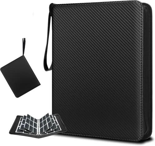 • Premium Quality Material - Our trading card binder crafted from high-grade PU material for enhanced durability and a luxurious feel, which offers superior protection for your valuable cards. The surface is scratch-resistant, easy to clean, and ensuring long-lasting performance. The 3-ring buckle, made with stainless steel, allows for easy opening and closing without the risk of scratching your hands. The convenient design also allows for effortless addition or removal of card sleeves. Massive Storage Capability - Prepare to organize and showcase your extensive card collection with the HYMENEX football card binder. Featuring a 55 robust 9-pocket sleeves, which can hold up 990 cards, it’s the epitome of storage efficiency for trading cards, ensuring your favorites are neatly arranged and easily accessible. Ultimate Protection for Your Cards - Secure your treasures with confidence using our convenient design that prevents slippage and unwanted elements. A smooth-operating zipper encases your collection, safeguarding both the cards' condition and your privacy. Trust our card binder for comprehensive protection of your valuable cards. Portability Meets Convenience - With the baseball card binder, take your cards wherever adventure leads. Sporting a comfortable wristband for easy transportation, your collection is no longer confined to one place. Now, you can enjoy and share your passion for trading cards anytime, anywhere. Versatile and Accessible - This card collection binder isn’t just for trading cards