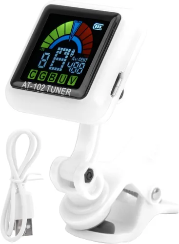 Afinador de clip recargable USB para guitarra eléctrica, violín, ukelele con pantalla a color (AT-102 blanco)