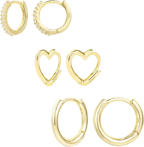 Alexcraft - Juego de 3 pares de aretes de aro pequeños de oro de 14 quilates, hipoalergénicos, ligeros, para mujeres y niñas