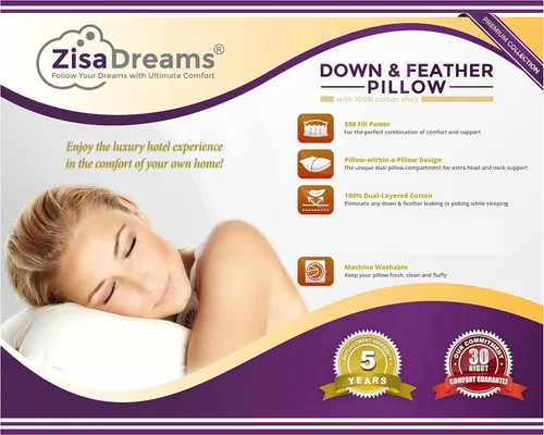 Nuestra famosa almohada de plumón y plumas de primera calidad probada por grupos focales te dará el sueño por la noche que te mereces. Esta combinación de estructura de plumas y plumón te permitirá conciliar el sueño en poco tiempo y desarrollar la relación acogedora que debes tener con tu almohada suave y cómoda. No te conformes con solo una almohada de plumas, elige la premium que tenga los ingredientes perfectos para que te despiertes por la mañana descansado como nunca antes. Nuestro TSF 100% algodón de doble capa de 230 hilos garantizará que la comodidad y la estructura de la pluma y el plumón estén en su lugar, sin que te asomen por la noche. El diseño de almohada y almohada incluye 2 cámaras de comodidad para darte la comodidad y suavidad más duraderas sin que la almohada se aplane. Garantía de 30 noches de comodidad con política de devolución sin complicaciones Estamos tan seguros de que estarás tan feliz como tantos otros que han probado esta almohada y no pudieron dormir en ninguna otra almohada a partir de entonces. Si por alguna razón decide devolver su almohada, podrá hacerlo sin dudarlo ni molestias. Cuando compre en The Sleep Factory, tenga la seguridad de que tiene un equipo de expertos y atención al cliente detrás de usted. Tu satisfacción al 100% y una buena noche de sueño es la prioridad #1. ¡Te lo mereces! Especificaciones de la almohada: Tamaño y peso del relleno: Estándar: 20 x 26 / 31 onzas. Queen: 20 x 30 / 39.5 onzas. King - 20x36 / 49.8oz Cámara interior 85% pluma de ganso Cámara exterior 15% plumón de ganso 230 hilos, 100% algodón de doble capa. Tejido a prueba de plumón TSF premium Borde cosido con doble aguja. 550 Potencia de llenado Cuidado y esponjosidad: La almohada incluye instrucciones claras sobre cómo mantener tu almohada esponjosa en todo momento. Lavable a máquina/secable: mantén tu almohada fresca, limpia y esponjosa.
