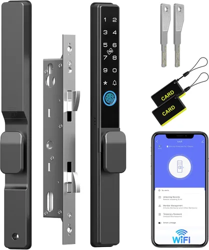 Anweller Cerradura de puerta corredera de cristal con mortaja 2085, teclado inteligente con código de huellas dactilares, aplicación remota RFID,