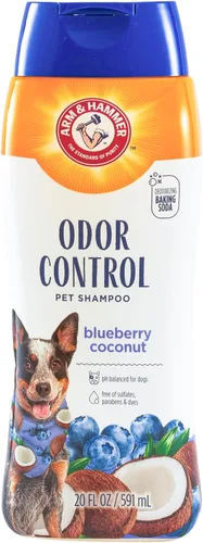 Libera el poder del bicarbonato de sodio con los productos de aseo Arm & Hammer. El champú para mascotas con control de olores elimina eficazmente los olores no deseados del pelaje y la piel. Las partículas de bicarbonato de sodio Arm & Hammer se disuelven y eliminan el olor para una limpieza profunda y un aroma duradero. Las infusiones de kiwi y extractos de romero se utilizan para neutralizar los olores y reducir el desprendimiento de un perro más limpio y una casa más limpia. Un aroma fresco de arándano y coco descansa ligeramente sobre el pelaje después del baño. Esta botella incluye 20 onzas de champú desodorizante para perros. Instrucciones: Humedezca bien el pelaje del perro con agua tibia. Aplique champú y trabaje en una espuma desde la parte posterior de las orejas hasta la cola, teniendo cuidado de evitar el contacto con los ojos. Enjuague bien. ADVERTENCIAS: Solo para uso externo. Seguro para perros de 8 semanas de edad y mayores. Evite el contacto con los ojos. Mantener fuera del alcance de los niños.