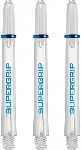3 juegos de ejes Tweenie Harrows Supergrip – Fuertes de policarbonato. Incluye anillos mecanizados. (9 Total) Longitud: 1.575 in; (no incluye rosca - 0.197 in) Rosca: 2ba Este eje de nailon del siglo XXI cuenta con anillos mecanizados de precisión que a diferencia de los resortes tradicionales no se abren cuando se montan vuelos. Esto resulta en un vicio increíble como agarre. El menor número de dardos para lanzar un juego perfecto de 501 es nueve. John Lowe logró esta hazaña por primera vez en televisión en el Campeonato Mundial de Matchplay de 1984. Golpeó triple 20 seis veces seguidas, seguido de triple 17, triple 18 y doble 18. El menor número de dardos necesarios para ganar 301 doble-in y doble out es seis. Puedes hacer esto golpeando doble 20, triple 20, triple 20, triple 20, triple 19 y doble 12. Mucha suerte para lograr esta hazaña.