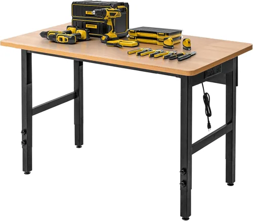 Banco de trabajo ajustable de 48 pulgadas con tomas de corriente, mesa de trabajo para garaje, banco de trabajo de madera dura de capacidad de 2000