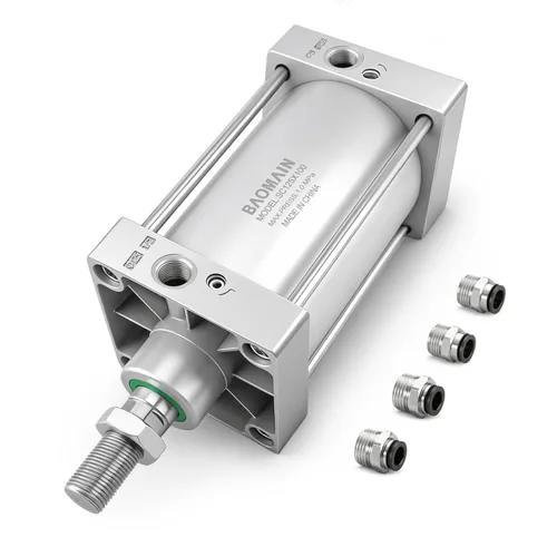 Diámetro de 4.92 pulgadas y carrera de 3.94 pulgadas: este cilindro neumático estándar ofrece un orificio de 4.92 pulgadas (4.921 in) y una carrera de 3.94 pulgadas (3.937 in). Su diseño de doble efecto, de una sola varilla garantiza una fuerza constante tanto en los movimientos de avance como de retorno Varilla de pistón roscada M27X2: el vástago del pistón cuenta con un extremo roscado macho M27X2 para una conexión segura y estandarizada. El rodamiento autolubricante integrado permite un funcionamiento sin mantenimiento Kit de montaje y puerto PT de 1/2 (0.079 x 0.394 in + 0.079 x 0.472 in): equipado con un puerto de aire PT de 1/2 pulgada e incluye 4 accesorios a presión compatibles (2 para tubo de 0.394 in y 2 para tubo de 0.472 in de diámetro exterior), lo que permite una instalación rápida y fácil en tu sistema neumático Aleación de aluminio duradera: hecho de aleación de aluminio de alta resistencia, este cilindro es ligero, resistente a la corrosión y construido para un rendimiento confiable en varios entornos de trabajo 【Para automatización industrial】Ideal para sistemas automatizados en la industria ligera, embalaje, manejo de materiales y aplicaciones de maquinaria donde se requiere un accionamiento neumático compacto y confiable