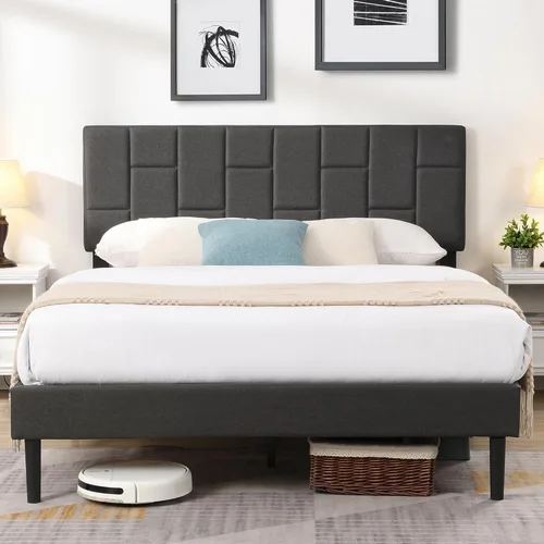¿Para qué sirve Base de cama tamaño Queen con cabecero, base de cama tapizada con plataforma de lino con soporte de listones de madera, sin ruido, no necesita?