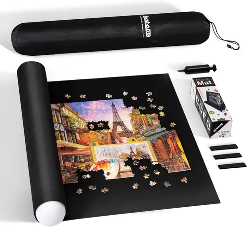 Diseño único antifugas: el tubo inflable incluido está diseñado con una ranura antifugas que hace que el tubo inflado dure más que otros sin ranuras. Aprieta la válvula para abrir la ranura e insertar la aguja de inflado e infla con la bomba de mano incluida. Capacidad para hasta 2000 piezas: esta alfombrilla antideslizante mide 51 x 33.9 pulgadas y tiene capacidad para hasta 2000 piezas de rompecabezas para garantizar que tu juego de rompecabezas no se doble ni se arrugue. Accesorios prácticos: la mini bomba de mano incluida y el tubo inflable garantizan la seguridad y el almacenamiento de tus juegos sin terminar. Para inmovilizar aún más tus piezas del rompecabezas, se incluyen 3 bandas elásticas para sujetar ambos extremos de la alfombrilla enrollada. Fácil de usar: simplemente extiende la alfombrilla de fieltro en un piso plano, entonces puedes comenzar a disfrutar de tu diversión de rompecabezas. Siempre que quieras pausar y guardar tu juego sin terminar, coloca el tubo inflado en cada extremo del tapete, enróllalo junto con una presión uniforme y sujeta ambos extremos del rollo antes de ponerlo en la bolsa de almacenamiento cerrada. Contenido del paquete: 1 alfombrilla de fieltro, 1 bomba de mano, 1 tubo inflable, 3 bandas elásticas, 1 bolsa de almacenamiento. El exquisito embalaje lo convierte en un regalo ideal para los fanáticos de los rompecabezas de todas las edades. Ten en cuenta que el paquete no incluye rompecabezas.