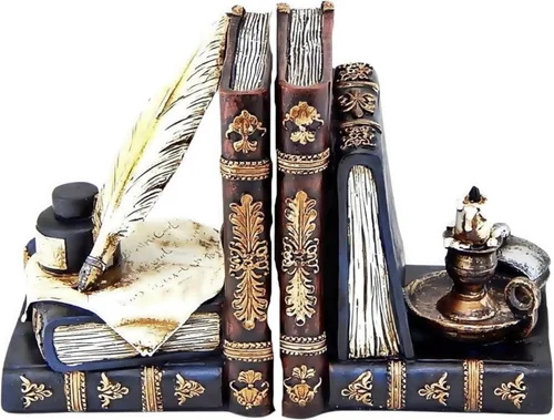 Bellaa 26324 Sujetalibros Vintage de Mago con Pluma de Ave y Botella de Tinta con Lámpara de Aceite Estilo Antiguo Granja Casa de Campo Cabaña Lodge