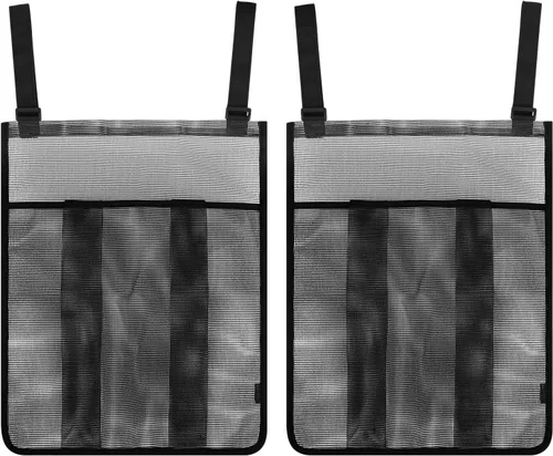 Fuerte compatibilidad: nuestra bolsa de zapatos para cama elástica es adecuada para camas elásticas de diferentes tamaños; recibirás 2 bolsas de zapatos de cama elástica, suficientes para satisfacer tus necesidades de reemplazo y compartir. Gran espacio de almacenamiento: nuestra bolsa de malla de almacenamiento para cama elástica está hecha de tela de malla reforzada sólida, adecuada para guardar zapatos, pelotas u otros accesorios de juego de cama elástica; en verano, también puedes poner toallas y ropa en estas bolsas, conveniente para que los niños se limpien y cambien de ropa después de sudar. Fácil de instalar: es fácil de instalar el organizador de zapatos de cama elástica, simplemente ata las correas de velcro en ambos lados de la escalera para el trampolín; todo el proceso de instalación se puede completar en 2 minutos o menos. Diseño único: hay 2 correas de velcro en la parte superior del soporte para zapatos de cama elástica, lo que te permite fijar la bolsa de zapatos al trampolín de forma más segura sin preocuparte de que la bolsa se caiga mientras juegas y mancha el contenido. Amplia aplicación: la bolsa de zapatos para cama elástica es multifuncional y práctica, se puede aplicar no solo para camas elásticas, sino también para camping, almacenamiento de piscina, almacenamiento de decoración de pared y mucho más.