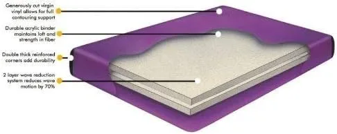 Esta cama de agua rígida tiene vinilo resistente de la más alta calidad, vinilo virgen de corte generoso para soporte contorneado, esquinas reforzadas de doble grosor que añaden durabilidad, sistema de reducción de ondas de 2 capas = aproximadamente 60% de reducción de movimiento. Viene con una garantía prorrateada completa de 3 años, 9 años. Dimensiones 60X84X9