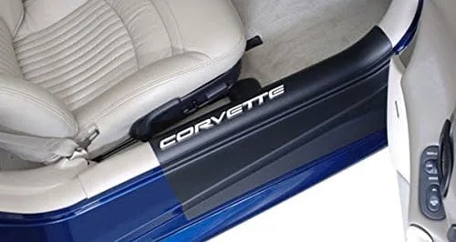 Protege la zona del umbral de tu Corvette de arañazos y rozaduras con estos protectores negros para umbrales. Viene con letras Corvette en relieve en blanco.