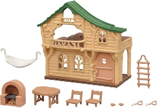 ¡Come, duerme y juega en el Lakeside Lodge de Calico Critters! Este juego listo para jugar incluye un bebé Labrador amarillo que se puede colocar y vestido con ropa extraíble. El Lakeside Lodge es una casa de cabina de dos pisos con un tobogán en la azotea, escalera de cuerda y hamaca. Este juego también incluye muebles y accesorios, incluyendo una mesa de comedor rústica con dos sillas, 2 tazas y horno de ladrillo con malvaviscos en palos. Juega junto con toda la serie Family Trip de Calico Critters incluyendo Adventure Treehouse