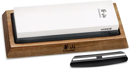 Afila profesionalmente tus cuchillos con esta piedra de afilar de doble cara de Cangshan. Perfecto para chefs profesionales y caseros para mantener tus cuchillos afilados. Con 2 granos, gruesa y fina, esta piedra de afilar, también llamada piedra de agua, es lo que los chefs profesionales eligen como su mejor y más precisa herramienta de afilado. Cada lado está hecho de óxido de aluminio junto con compuestos de afilado en diferentes granos. Sumergir la piedra en agua durante 10-15 minutos. CONFIGURACIÓN: Coloque la piedra de afilar en la base de madera, con el lado grueso hacia arriba, con el borde corto de la piedra hacia usted. POSICIÓN: Sostenga el cuchillo en un ángulo de 16 grados con respecto a la piedra. Cuchillo facial lejos de ti. Afilar: Desde el talón de la hoja, barre el cuchillo a lo largo a través de la piedra. Repita en el otro lado. HONE: Voltee la piedra de afilar con el lado fino hacia arriba y repita los pasos anteriores. LIMPIO: Enjuague el cuchillo y la piedra de afilar, asegurándose de que ambos estén secos antes de guard Con una base de madera de acacia, esta piedra de afilar clásica es una gran adición a la colección de cuidado de cuchillos de cualquier chef. Garantía de por vida contra defectos del fabricante.