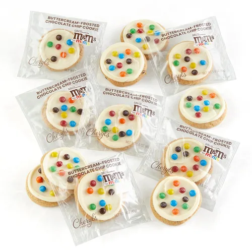 Cheryl's Cookies Galletas con chispas de chocolate con M&M'S Minis - Caramelos de chocolate con leche, glaseados con crema de mantequilla, Kosher,