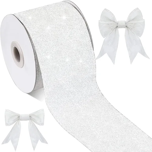 Cinta de Navidad con purpurina con alambre de 2.5 pulgadas x 10 yardas, cinta metálica de Navidad decorativa para envolver regalos, decoración