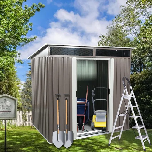 ¿Para qué sirve Cobertizo de almacenamiento para exteriores de 6 x 4.5 pies con base de metal y puertas corredizas, cobertizo de almacenamiento de herramientas?