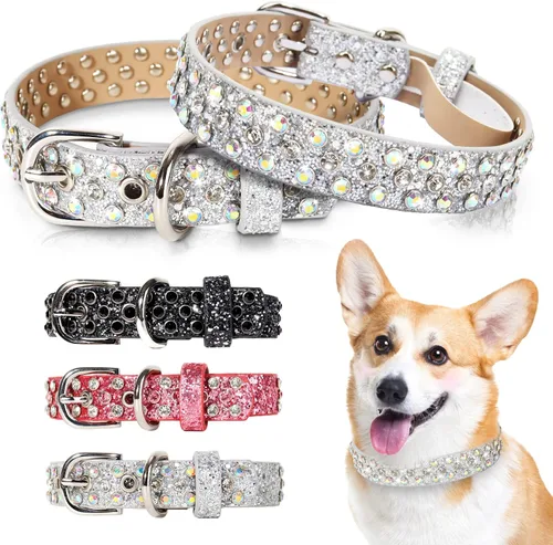 Nota: este collar de perro solo para decorar no para restringir o aprovechar, especialmente no en el perro grande lleno de energía. Además, este collar no es adecuado para cachorros de menos de 15 libras. Utiliza una regla suave para medir y asegúrate de dejar dos dedos entre el collar y el cuello del perro para un ajuste perfecto. Para dimensiones específicas, consulta la tabla de dimensiones. Acerca del tamaño: este collar ajustable para perro viene en 4 tamaños, 5 agujeros ajustables, XS: 7"-11", 0.17lbs, S: 10"-14", 0.17lbs, M: 13"-17", 0.20lbs, L: 16"-20", 0.21lbs. Adecuado para perros pequeños, medianos y perros grandes como corgi, pug, pitbull, saluki, Jack Russell Terrier, husky, Shiba, Boston Terrier, bulldogs franceses, pastor alemán, etc. Alta calidad y bien hecho: nuestro collar de perro con diamantes de imitación está hecho de cuero de microfibra, que es más duradero y resistente al desgaste que el material de poliuretano. La hebilla de bloqueo y el anillo en D están hechos de metal de aleación de zinc de alta calidad, antiroturas. Cada collar de perro tiene 5 agujeros, cada agujero reforzado con metal de aleación de zinc, es un collar de perro bastante bueno para perros pequeños y medianos y grandes. Diseño de collar de perro brillante: diamantes calientes de alta calidad, todos los diamantes de imitación están tachonados y fijados por agujeros de aleación, no se caen fácilmente. Y brilla, proporcionando un divertido e increíble adorno para el cuello de tu mascota para tu adorable perro. Te ayudará a recibir toneladas de cumplidos de amigos, vecinos u otros transeúntes. Collar de perro de cuero con tachuelas: collar de moda muy lindo para perros hembras, collar de perro de cuero suave, de alta calidad y agradable al tacto. El collar para perro está hecho de tratamiento de envoltura de borde de aceite. La búsqueda de detalles solo para una mayor calidad