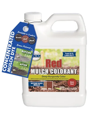 Mulch Worx Concentrado de color Red Mulch - Cuarto de galón - Trata 2,800 pies cuadrados - Spray de tinte para mantillo rojo borgoña profundo