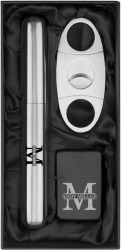 Conjunto de regalo personalizado con inicial grabada de acero inoxidable para cigarros, cortador y encendedor