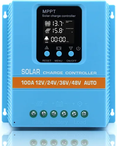 【Tecnología MPPT superior】 Este controlador solar MPPT de 100A está equipado con un algoritmo avanzado de tecnología de seguimiento del punto de máxima potencia (MPPT). Reconoce automáticamente sistemas de 12V/24V/36V/48V y cuenta con puertos de carga USB duales de 5V. El controlador puede rastrear rápidamente el punto de potencia máxima de la matriz fotovoltaica en cualquier entorno, asegurando una eficiencia de seguimiento de no menos del 99,5%. Esto mejora significativamente la utilización de energía en el sistema solar. 【Diseño versátil】 El controlador cuenta con una pantalla LCD multifuncional con retroiluminación y reloj. Ofrece siete modos de funcionamiento: modo de carga, modo de control de luz, modo de control de luz + control de retardo de tiempo, modo de control universal, modo de control manual y modo de control de temporización. La versión mejorada ahora admite un control de tiempo preciso, permitiendo que los dispositivos se enciendan y apaguen automáticamente de acuerdo con el tiempo establecido por el usuario. Además, puede mantener un estado de pantalla brillante continuo sin entrar en modo de hibernación o bloqueo. 【Protección de voltaje integral】 El controlador solar MPPT proporciona una extensa protección de voltaje, que incluye salvaguardas contra sobrevoltaje de la batería, sobrecorriente, falla de energía, sobrecarga, descarga profunda, conexión inversa y sobrecalentamiento. Además, el dispositivo ahora puede mostrar el voltaje en tiempo real del panel solar, ayudando a los usuarios a monitorear y optimizar el uso de energía, garantizar un funcionamiento normal y ayudar a solucionar problemas. 【Diseño centrado en el usuario】 La pantalla LCD está diseñada para mostrar dinámicamente los datos operativos y el estado de funcionamiento del equipo. Muestra parámetros del controlador como modo de trabajo, voltaje de la batería, corriente de carga fotovoltaica, corriente de descarga de la batería, temperatura de trabajo del producto y tiempo de retardo. Para escenarios que requieren reinicios de configuración o restauración de configuraciones predeterminadas, se ha añadido una función de "restablecimiento a la configuración de fábrica", proporcionando una solución rápida y efectiva. 【Diversas opciones de carga de batería】 El controlador es compatible con varios tipos de baterías, incluyendo Selladas, GEL, Inundadas y LiFePO4. Plan de garantía fiable: ofrece una garantía de 1 año y soporte técnico de por vida. No dude en ponerse en contacto con nuestro equipo para obtener asistencia técnica; nuestros ingenieros están listos para brindar asesoramiento y soluciones a cualquier problema que pueda encontrar. 【Le rogamos que tenga en cuenta】 Este controlador solar integra tanto las tecnologías de carga MPPT como PWM, ofreciendo una alta eficiencia de carga y un gran valor para el precio. Aunque es posible que no ofrezca funcionalidad MPPT completa, aún proporciona un rendimiento consistente. 【Recordatorio de inicio del dispositivo】 Al usar el equipo, por favor conecte primero la batería recargable y asegúrese de que tenga carga. Después de arrancar con éxito, conecte el panel solar para garantizar un funcionamiento adecuado.