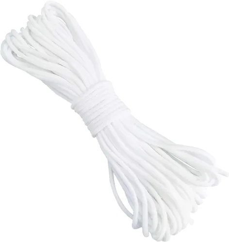 Cordón elástico redondo para máscara. Cuerda elástica blanca de 1/8 pulgadas, 50 yardas. Adecuado para tejer y coser manualidades, máscara