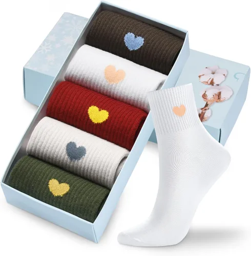Corlap Calcetines altos hasta el tobillo para mujer, de algodón, divertidos, bonitos, atléticos, para correr, regalos para mujer (5 pares con caja