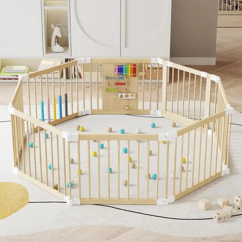 EXPERLAM Corralito para bebés – Corralito de madera para bebés y niños pequeños, corralito plegable con puerta de bloqueo, valla portátil para bebés