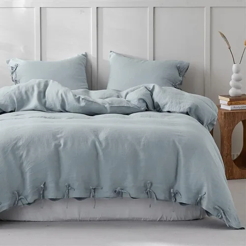 ¿Para qué sirve Simple&Opulence Juego de funda de edredón 100% lino, 3 piezas con cierre de lazos de lazo, lino lavado francés natural, color sólido, suave?