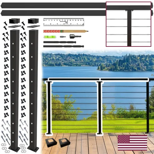 Incluye dos postes de línea de 36 pulgadas, dos rieles de metal de 4 pies con conectores metálicos, protectores de funda de cable para cada orificio y todos los accesorios de montaje necesarios. Requiere cables de acero inoxidable de 1/8 pulgadas y una herramienta de engaste o cortador (no incluido). Compatible con P36CK y P36EK. Incluye manguitos de cable de 1/8 pulgadas. Diseñado para su instalación en superficies planas, estos postes de línea cuentan con agujeros preperforados y protectores de cable compatibles con cable de 1/8". (Fácil de usar: Adecuado para sistemas de barandillas de cables de terraza, balcón o porche. Estos postes para barandilla de cable y barandilla de cable de metal también funcionan mejor como poste de barandilla de alambre para cubiertas. Rieles de metal para barandillas y barrajes: este kit de barandilla de cubierta de cable incluye 2 rieles de acero galvanizado con recubrimiento en polvo comercial de 4 pies, rieles superiores de acero galvanizado y 2 conectores de riel superior, por lo que no es necesario comprarlos por separado. Ideal como barandilla de cubierta, riel de porche delantero, barandilla de balcón y poste de valla al aire libre duradero para jardines o pasillos, añadiendo seguridad y accesibilidad donde sea necesario. Fácil de usar y fácil de usar: no es necesario hacer múltiples carreras a la ferretería. Para mayor comodidad, los conectores de riel superior, terminales de cable y protectores de manguitos de cable en ángulo por valor de $40 se incluyen en el kit GRATIS. Nuestro kit de barandilla de cable es ideal como sistema de barandilla de alambre para barandillas de porche y barandilla de cables para cubiertas con accesorios de barandilla de cable incluidos para facilitar la instalación. Hecho de acero galvanizado con soldaduras sólidas de precisión y un acabado negro duradero con recubrimiento en polvo de grado comercial, este poste está diseñado para la longevidad y cuenta con una superficie resistente a las huellas dactilares y fácil de limpiar. Postes de barandilla de cubierta de cables adecuados para múltiples usos, como kit de barandilla de valla de cable y sistema de barandilla de cubierta de cable. Nuestros postes de cable son probados para resistencia y seguridad, y soportan una carga de 234 libras, asegurando la estabilidad. Nuestros postes de cable negros son más que simples postes de barandilla de cable para cubiertas, también son adecuados para kit de barandilla de porche al aire libre e interior, y postes de valla de cable multiusos para proyectos comerciales, industriales y residenciales. Fácil de usar. Diseñado para cumplir con las normas IBC (Código Internacional de Construcción) y ANSI (American National Standards Institute). Se requiere el cumplimiento de los códigos de construcción locales; verifique las regulaciones específicas con el departamento de construcción local antes de comprar el producto. CR Fence & Rail es una empresa con sede en los Estados Unidos que se especializa exclusivamente en productos de vallas y barandillas. Somos orgullosos miembros de la AHA (American Fence Association), ABC (American Builders & Contractors) y BBB (Better Business Bureau). A diferencia de los competidores, nos centramos únicamente en proporcionar soluciones de cercado y barandilla de alta calidad. Nuestro equipo de soporte por hora de EE. UU. está disponible los siete días de la semana con tiempos de respuesta de 10 minutos o menos. En caso de que se requiera una pieza de repuesto, enviamos el mismo o más tarde al día siguiente desde el almacén de los Estados Unidos, asegurando retrasos mínimos en el proyecto.