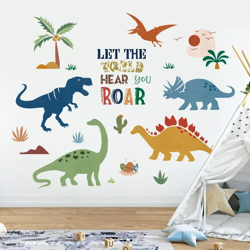 decalmile Calcomanías de Pared de Dinosaurio Boho Pegatinas de Pared de Dinosaurio y Palmera Guardería de Bebé Dormitorio de Niños Sala de Juegos
