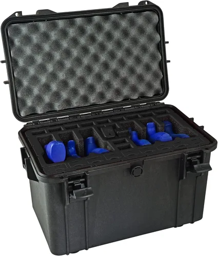 Capacidad de la funda: esta funda Doro acolchada extra resistente de 12.5 x 17.9 x 11.4 pulgadas tiene capacidad para 6 pistolas o pistolas y 24 cargadores y puede adaptarse a pistolas de hasta 8.5 pulgadas de longitud total Ligeras y resistentes: nuestras fundas ligeras son impermeables, a prueba de polvo y construidas para durar con una bisagra duradera de longitud completa, pasadores de nailon sin corrosión y una válvula de ecualización de presión hermética para proteger tu pistola durante años Espuma premium: nuestra espuma de polietileno de celda cerrada de grado militar es resistente al agua, a los productos químicos y a la humedad y se puede limpiar fácilmente; personaliza para acomodar cargadores más cortos con tapones de corte a longitud incluidos y soportes de barril extraíbles Viajes seguros: esta funda portátil cumple con la TSA para volar con un arma de fuego y cuenta con 2 agujeros para candado y una válvula de ecualización automática de presión; cada funda con clasificación IP67 que absorbe los golpes es impermeable hasta 30 minutos sumergida 3.3 ft de profundidad La seguridad es lo primero: nuestras fundas están diseñadas para que todas las pistolas estén siempre apuntando hacia el suelo para garantizar un almacenamiento seguro y seguro
