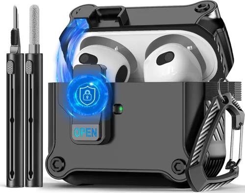 ¿Para qué sirve Funda compatible con AirPods 4, bloqueo automático magnético con soporte para teléfono y kit de limpieza, compatible con funda Magsafe, color negro?