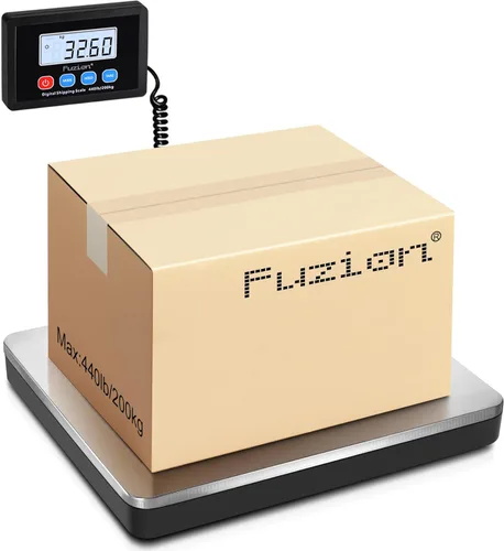Capacidad grande y precisión - Pesa hasta 440 libras/200 kg con precisión de 10 g y legibilidad mínima de 50 g, perfecta para paquetes pesados; mide en libras, kg o libras: onzas. Construido para durar: plataforma de acero inoxidable y base de ABS duradera con pies antideslizantes para un uso estable y a largo plazo. Funciones esenciales: las funciones HOLD y TARE facilitan el pesaje de artículos voluminosos o incómodos, con indicación de sobrecarga para mayor seguridad. Fácil de calibrar. Pantalla fácil de leer: el panel de control desmontable con una pantalla LCD retroiluminada permite un posicionamiento flexible y lecturas claras. 2 opciones de alimentación: viene con 2 pilas AAA, adaptador de CA y anclajes para paneles de yeso para una instalación y uso flexibles. Fuzion Soporte - Ofrecemos 2 años de garantía y soporte de por vida para esta báscula digital. Servicio de día completo por nuestro equipo de soporte de Fuzion Siempre estamos encantados de ayudarle con todas sus preguntas o inquietudes.