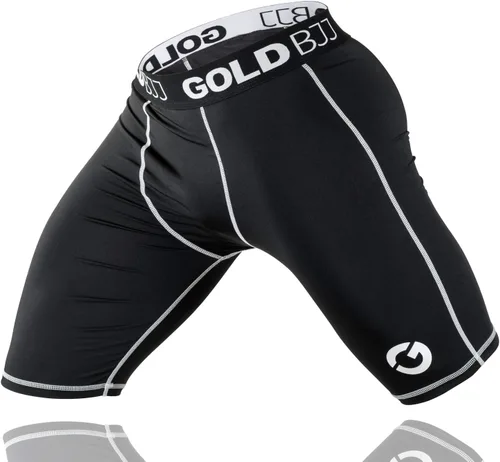 Gold BJJ Pantalones cortos de compresión Jiu Jitsu - Capa base para agarre Gi y No-Gi - Short de artes marciales