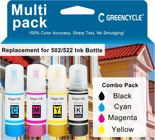 greencycle Botella de tinta de repuesto 522 para tinta compatible con T522, funciona con impresoras ET-2803 ET-2800 ET-2720 ET-4800 ET-4700,