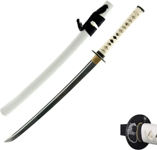Espada Katana Samurai afilada Espiga completa, acero al carbono 1045, hoja templada térmicamente Guerrero Tsuba Hoja de aproximadamente 21 pulgadas, mango de 9.5 pulgadas y total 32.5 pulgadas Uso para la práctica de corte de artes marciales, colección, decoración