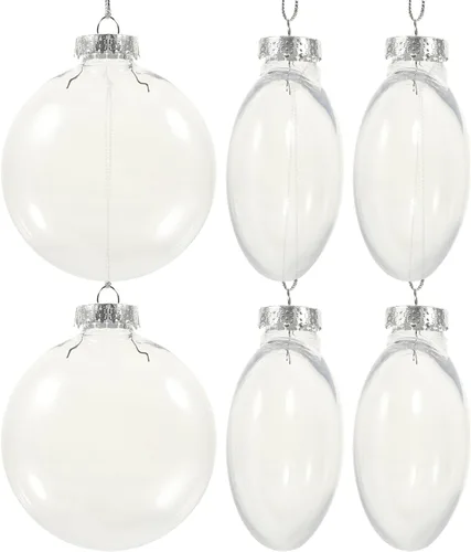 Descripción Bolas planas transparentes de Navidad, adornos colgantes rellenables de plástico, bola de globos de disco transparente, adorno para manualidades, árbol de Navidad. Características - Color: Transparente - Material: plástico PET. - Tamaño: 3.9 x 3.9 in. -🎅🎅Material de calidad: la bola transparente de adornos de Navidad está hecha de plástico de calidad, brillante y transparente, con el aspecto lujoso como el vidrio, pero no tienes que preocuparte por que se rompa, y puedes cambiar tu decoración o tema de fiesta simplemente cambiando el contenido del relleno. 🎄🎄Fácil de hacer manualidades: puedes llenar nuestras bolas decorativas transparentes con cintas, caramelos, fotos, miniaturas, objetos naturales y más para hacer proyectos de bricolaje rápida y fácil, que son adecuados para Navidad, bodas y otras decoraciones navideñas. Creativo sin fin: abre tu imaginación y haz tus manualidades con adornos transparentes de bolas de Navidad, colocando diversos dispositivos en las bolas transparentes para crear un fuerte ambiente festivo y mostrar tu gusto personal. Amplia gama de usos: las bolas transparentes no solo se pueden considerar como herramientas de decoración navideña, sino que también puedes llenarlas con tus cosas favoritas, como decoraciones colgantes para tu hogar, árboles de Navidad, centros comerciales, hoteles, vitrinas y mucho más. El paquete incluye: 6 bolas transparentes rellenables