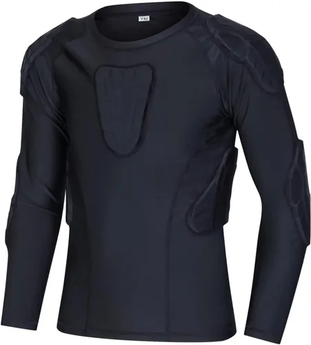 poliéster Almohadillas profesionales de 0.394 in: espuma EVA de alto rendimiento, diseño de bloque, máxima protección física, efectivamente lento y disperso uniformemente impacto, proporciona una protección extrema contra impactos y abrasión para todos los deportes. Pantalones cortos acolchados de EVA con protección de 5 almohadillas para la cadera: proporcionan protección general para tus glúteos, entrepierna, coxis y muslos, ayuda a proteger la cadera y los coxis de nuestros niños y jóvenes cuando se caen o se deslizan. Cintura elástica y diseño de silicona antideslizante, para un ajuste cómodo, evita el movimiento durante el ejercicio. Protector de costillas de fútbol para niños jóvenes: camisas de compresión acolchadas, ergonómicas, almohadillas que absorben impactos que protegen del impacto en las costillas, el esternón, los hombros y la zona de la espalda baja. La camiseta acolchada de fútbol juvenil 2 en 1 ofrece protección adicional sin quitar tu movilidad. Cómodo: costuras planas sin costuras, minimizando la fricción superficial en la piel. Elástico, transpirable, ligero, proporciona comodidad y ajuste. Se recomienda lavar a mano en agua fría. Perfecto para múltiples deportes: perfecto para baloncesto, fútbol, béisbol, fútbol, patinaje, snowboard, scooter, esquí, ciclismo, lacrosse, catchers, porteros, lanzamientos y bateo. Los mejores regalos de Navidad, Halloween y cumpleaños.