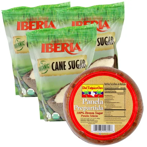 Iberia Azúcar de caña orgánica, 1.5 libras (paquete de 3) + Iberia Panela Prepartida, 32 onzas