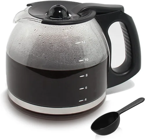 Jarra de café de repuesto para 12 tazas compatible con cafetera Mr. Coffee, repuesto # PLD12 PLD12 serie PLD12-RB, mango negro