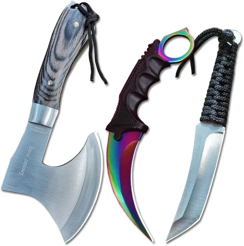 ¿Para qué sirve Juego combinado de cuchillos de hacha y hoja fija, espiga completa, mango de madera, para acampar al aire libre, caza de supervivencia, funda?