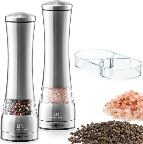 Ver Juegos de Molinos para Sal y Pimienta Ir al inicio mIAJuego de molinillo de sal y pimienta, molinillo de pimienta de acero inoxidable de gran capacidad y molinillo de sal con bandeja en lujosa caja