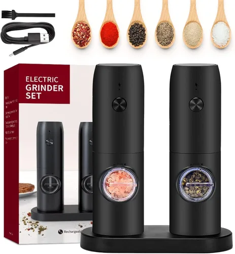 Juego de molinillo eléctrico de sal y pimienta, salero y pimentero automático, grosor recargable y ajustable, operación con una mano, molinillo