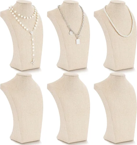 Kigley 6 piezas de collar de lino para exhibición de busto, soporte de joyería para maniquí de venta de joyas (11.4 x 6.9 pulgadas)